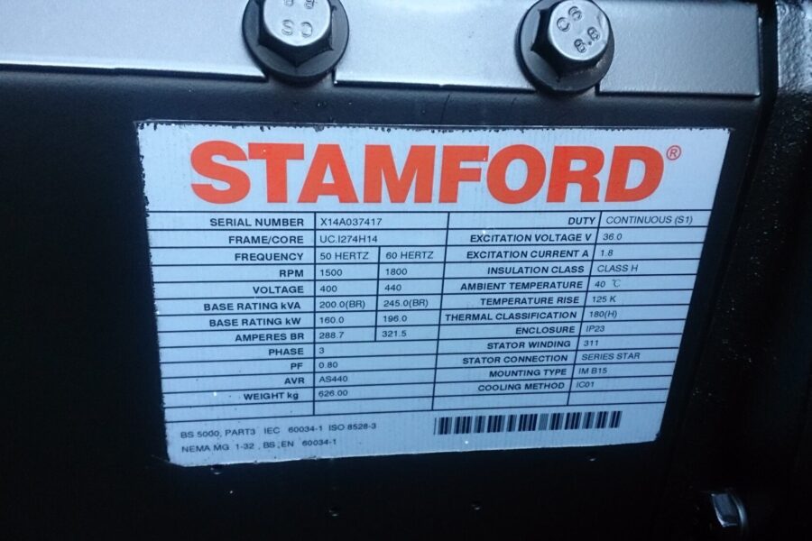 Motor er Perkins med Stamford generator 200kva 400V og ComAp styring.